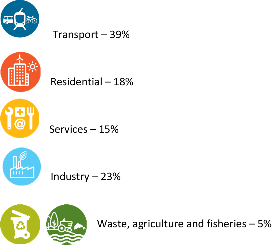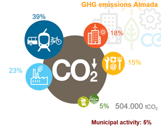 Due to its urban nature, transport and buildings (services and residential) are the biggest energy consumers in Almada, as can be seen from the figure below. Almada signed the Paris City Hall Declaration during the COP21 climate conference in 2015, committing to reduce its CO2 emissions by 80% by 2050.